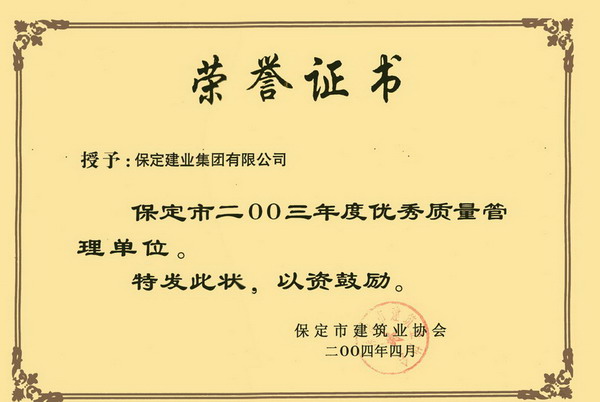 03年度保定市優(yōu)秀質(zhì)量管理單位